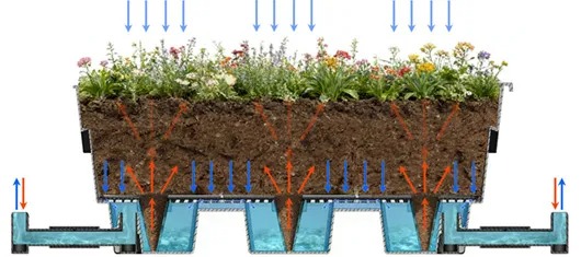 Urban areas often struggle with water runoff and drainage issues. A Green Roof Module absorbs rainwater, reducing the volume and speed of runoff.